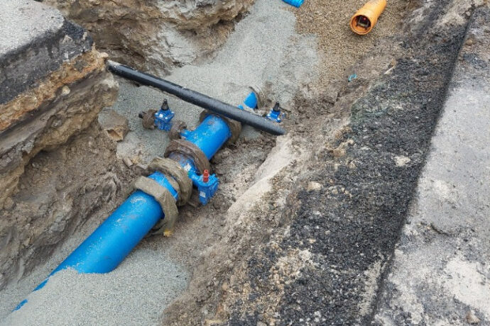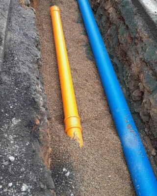 Pour le compte de la Communauté de Communes du Pays Bigouden Sud, Cise TP renouvelle les réseaux d’assainissement (PP Ø 200) et d’eau potable (Fonte Ø 250) dans le cadre des travaux d’aménagement du futur rond-point de Kerbenoen.