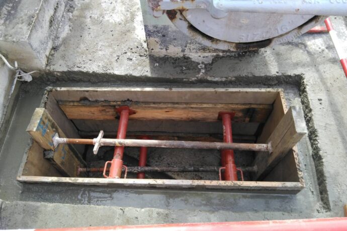 Une autre facette de ce chantier, la pause de réseau gravitaire à l’intérieur de canaux techniques. Dans un espace réduit, nos équipes ont procédé à la pose de fonte SMU et d’un encorbellement Ø100.